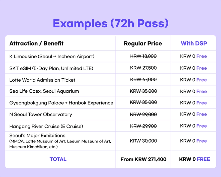 - Free admission to 50+ major attractions in Seoul including palaces, museums, and more!
