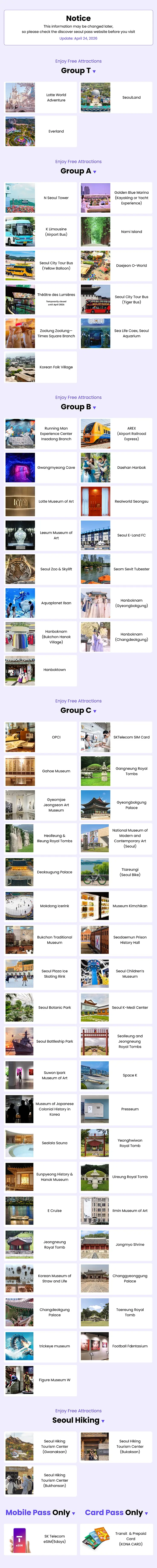 - To visit a tourist site using the Discover Seoul Pass, you must bring a physical card with you. You cannot use the site without a physical card.