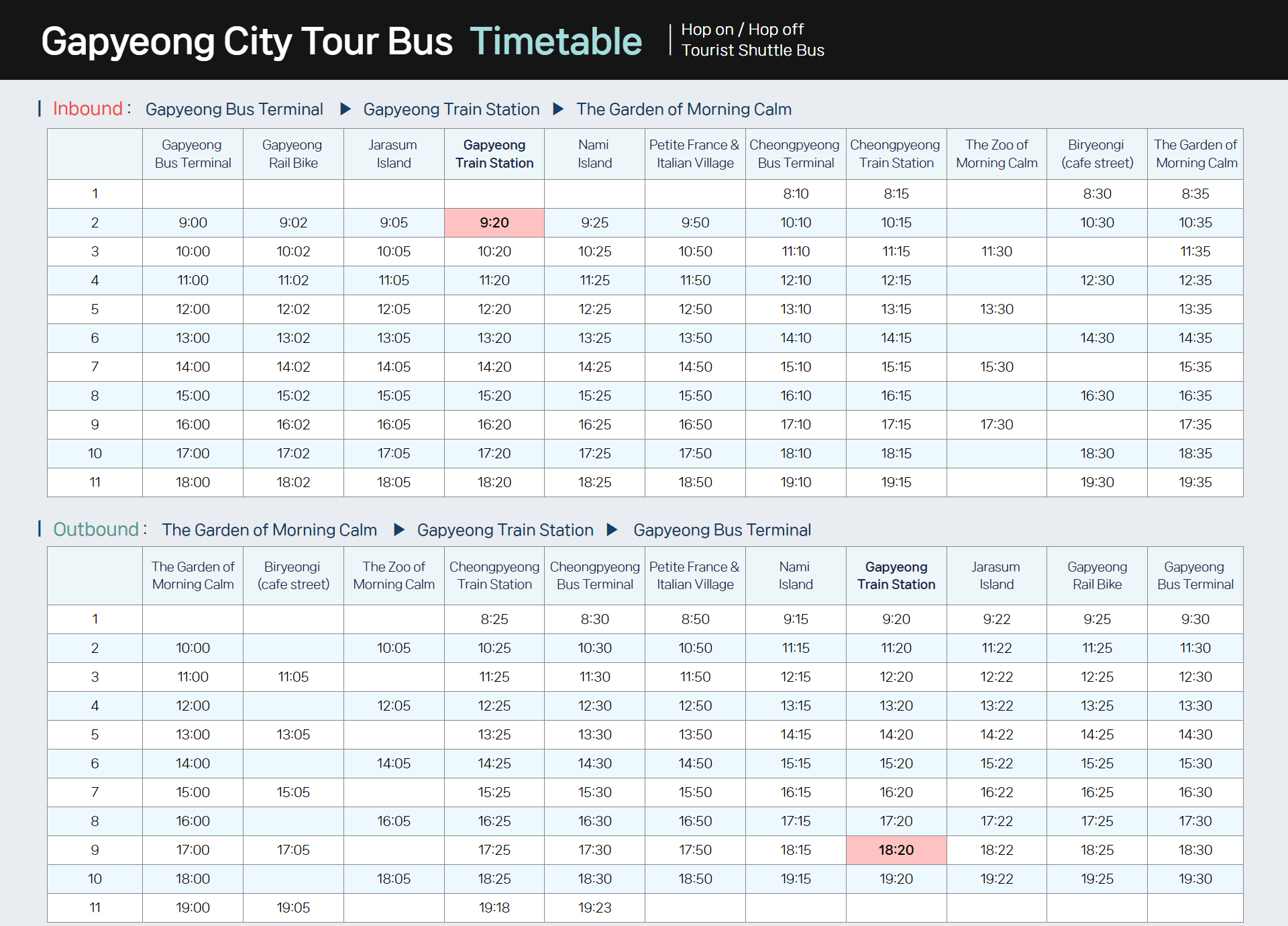 ▷Gapyeong City Tour Bus: hop on and off at various main attractions including Nami Island