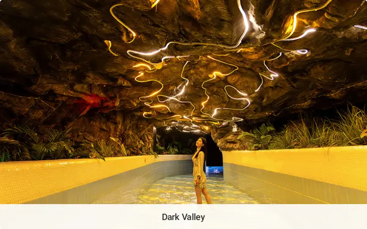 Instead of a typical water slide/water‑park experience, Water World features 12 themed zones combining shallow water streams, media art installations, and immersive visual and auditory environments.