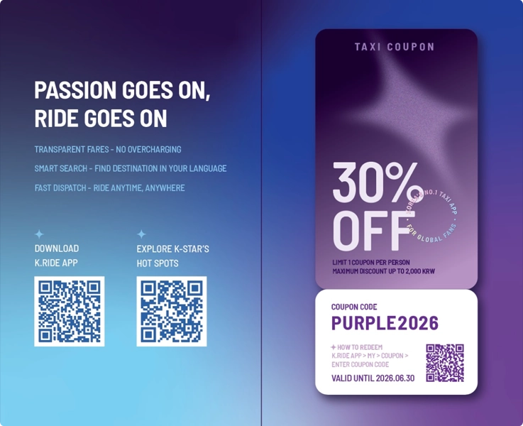 - Purchase a 3-day or longer SIM card and get a 30% discount voucher for K.ride taxi (up to 2,000 won off).