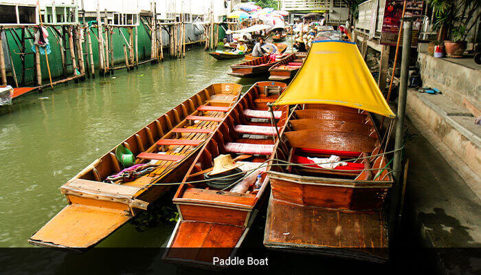 [Optional activities - additional charges] *You can choose to ride a paddle boat around Damnoen Saduak Floating Market at an additional charge of 150 baht per person. The additional charge can be paid on-site. *Please note that the paddle boat is different from the long-tail motorboat, which you will be taking to reach the market. The long-tail motorboat ride is included in the tour fee.