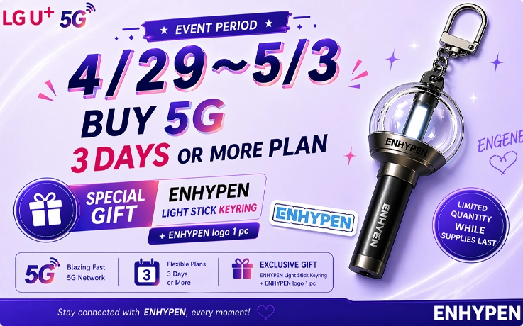 - Purchase a 3-day or longer SIM card and get a ENHYPEN light stick keyring!