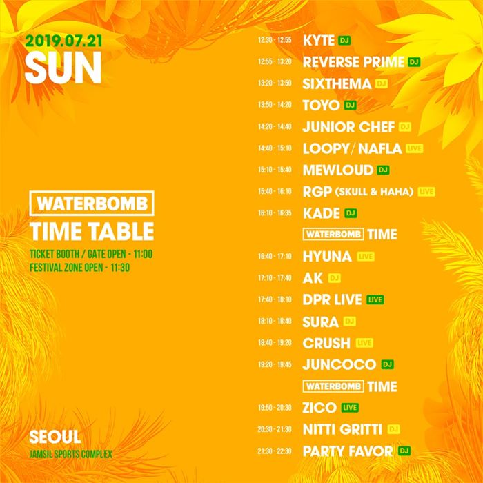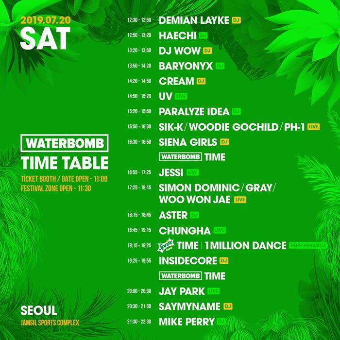 Line-up (July 20 Sat) | Mike Perry, Say My Name, Jay Park, Jessi, Simon Dominic, Sik-K, PH-1, Woo Won Jae, Woodie Gochild, Chungha, Demian Layke, Haechi, Wow, Baryonyx, Cream, UV, Paralyze Idea, Aster, Insidecore and more to be announced. |